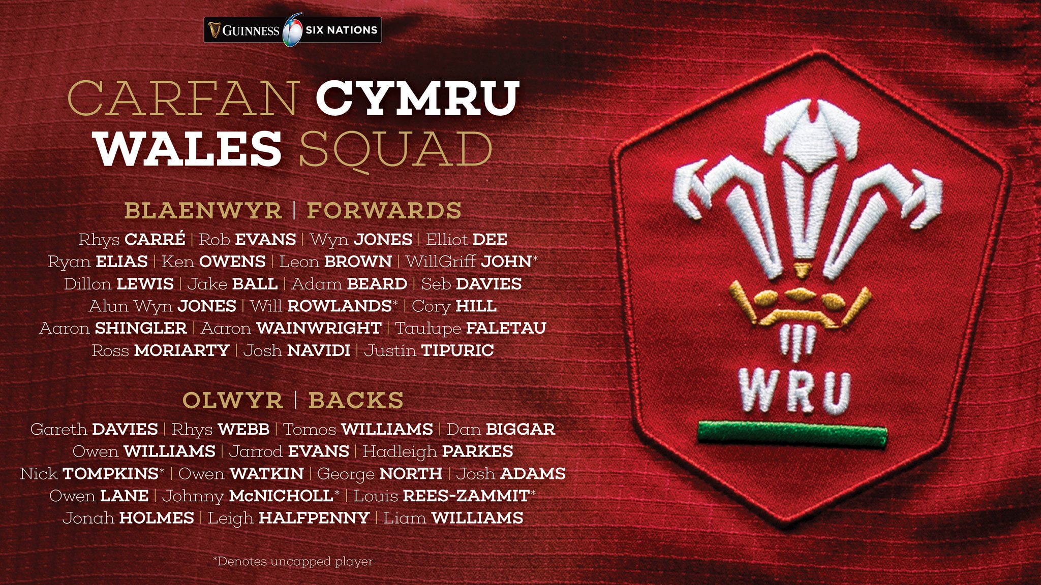 Wales six nations 2020 squad. Rwc squad members tomas francis rhys patchell and jonathan davies who all missed the guinness six nations campaign earlier this year return from injury to be included. Backs josh adams dan biggar. Jake ball leon brown rhys carre james davies seb davies elliot dee ryan elias taulupe faletau tomas francis cory hill alun wyn jones wyn jones samson lee dillon lewis shane lewis hughes josh macleod ross moriarty josh navidi sam parry will rowlands nicky smith justin tipuric aaron wainwright.